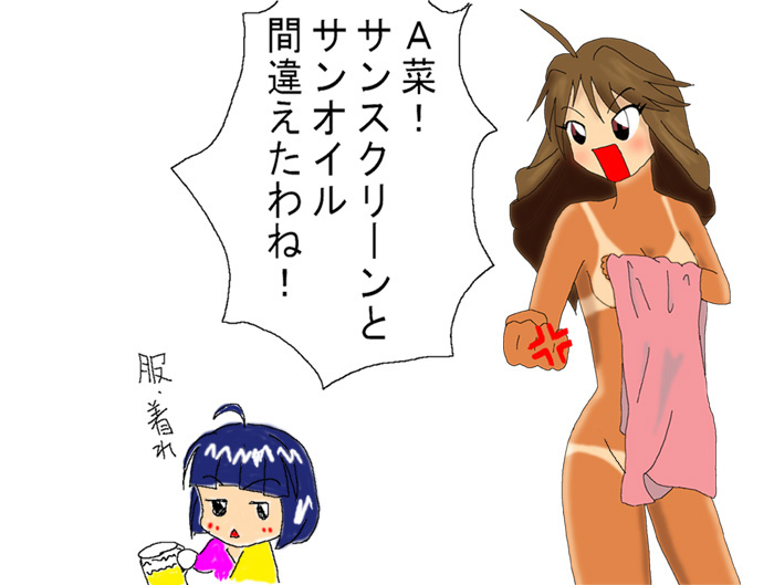 前回の海のイラストの戒菜&A菜はオイル塗った後、A菜が一方的にジャレてたという後付け!