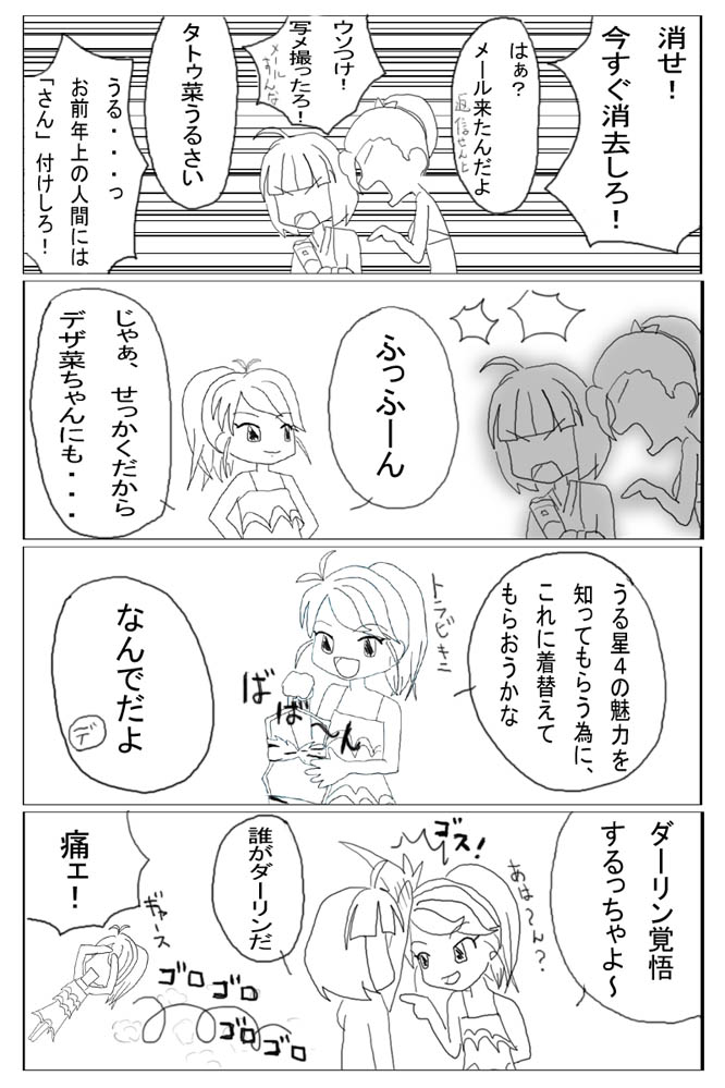 サ:いてて・・・デザ菜ちゃんのツッコミイテェーよ。あれ?漫画オシマイ?