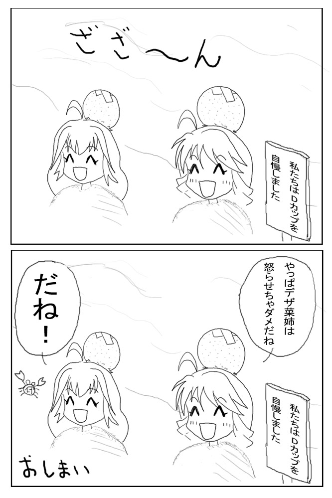 我ながらデザ菜さんの胸を盛りすぎたかな?と思っていたので、弁解の場として描かせて頂きました。