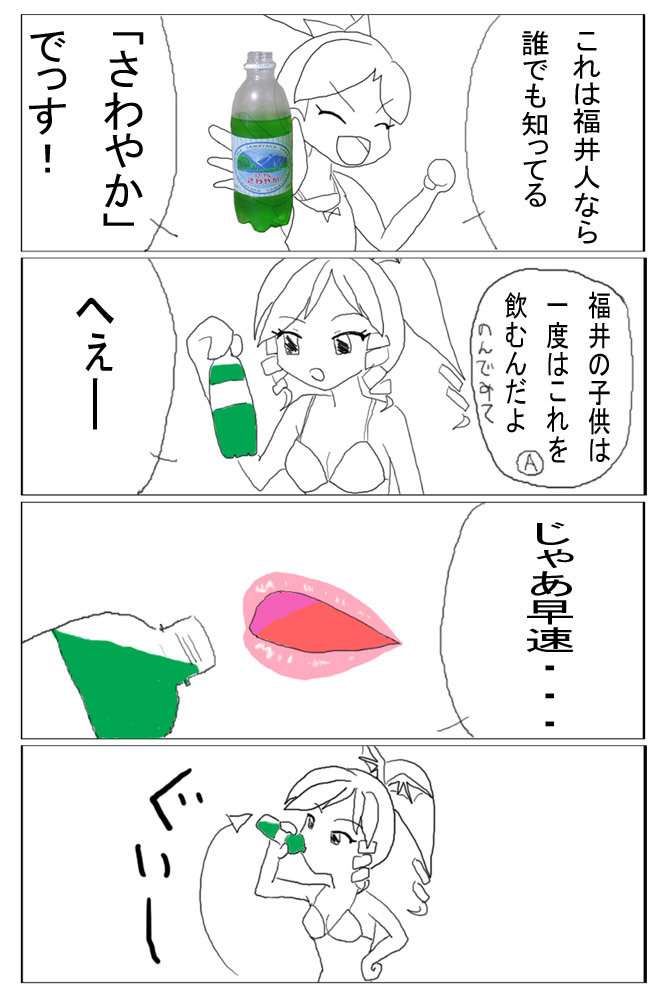 はい、第3弾は福井の代表的なジュース「さわやか」です。食べよっさと言っておきながら飲み物の紹介でした。
