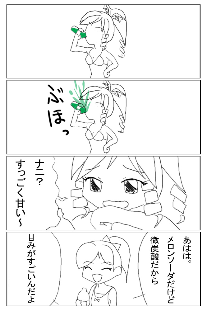 が、微炭酸のメロンソーダは大変甘く、340mlということもあり子供には量が多い飲み物でした。