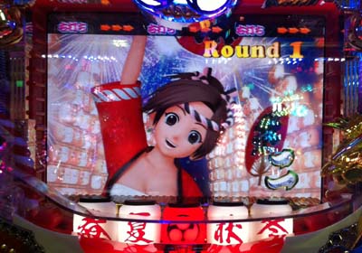 新台の春夏秋冬に移動。2k目でそよたん3人が太鼓を叩いて「突」出現。